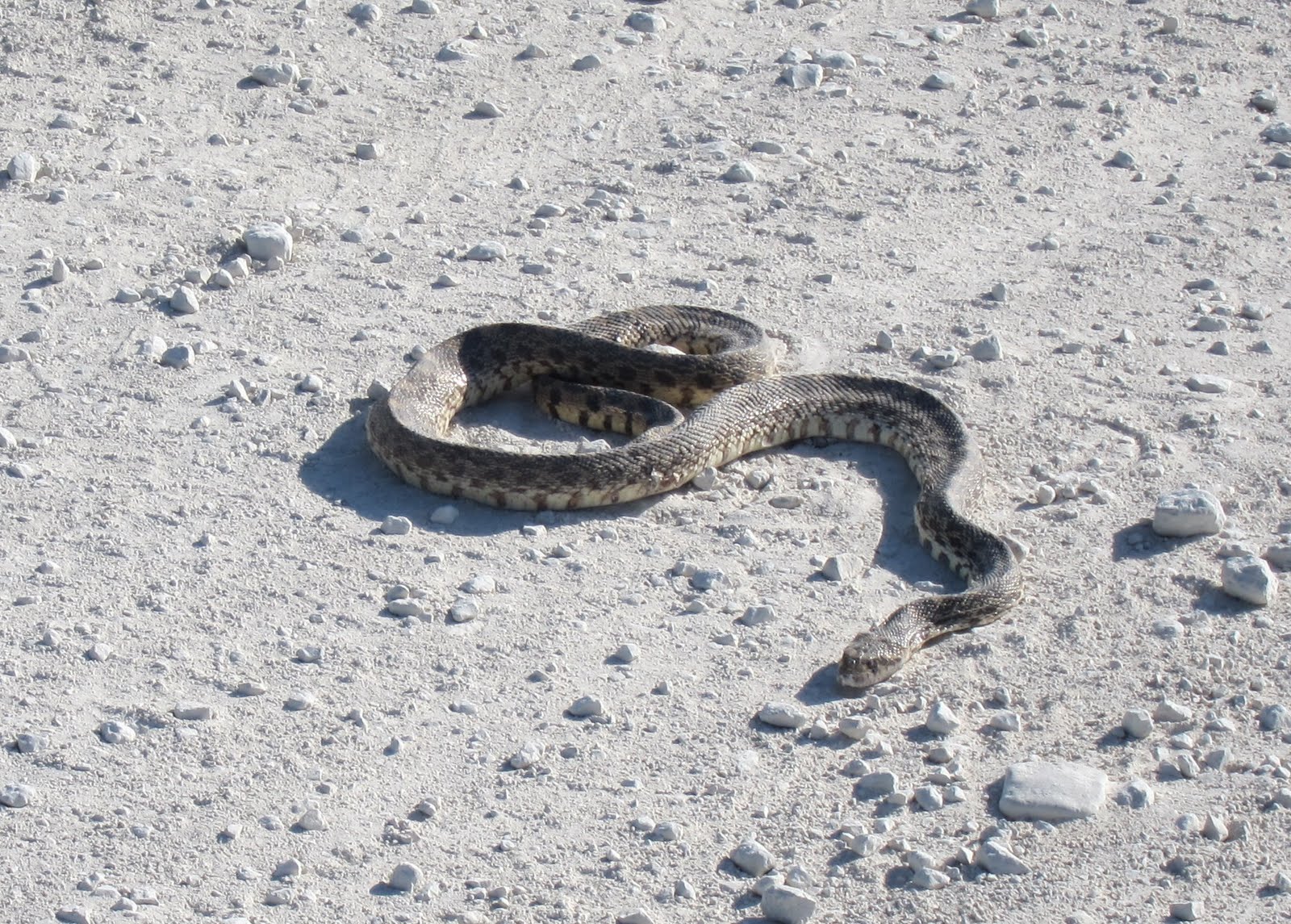 This guy was just lounging in the middle of the road, apparently soaking up the warm sunshine. He didn't seem to be more concerned about automobile traffic than we were. He stayed right here in this spot as we road on by.